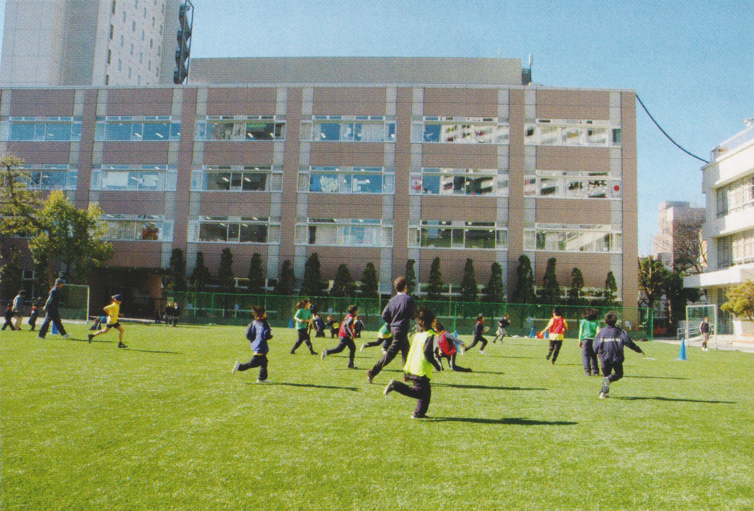 School field covered with artificial turf